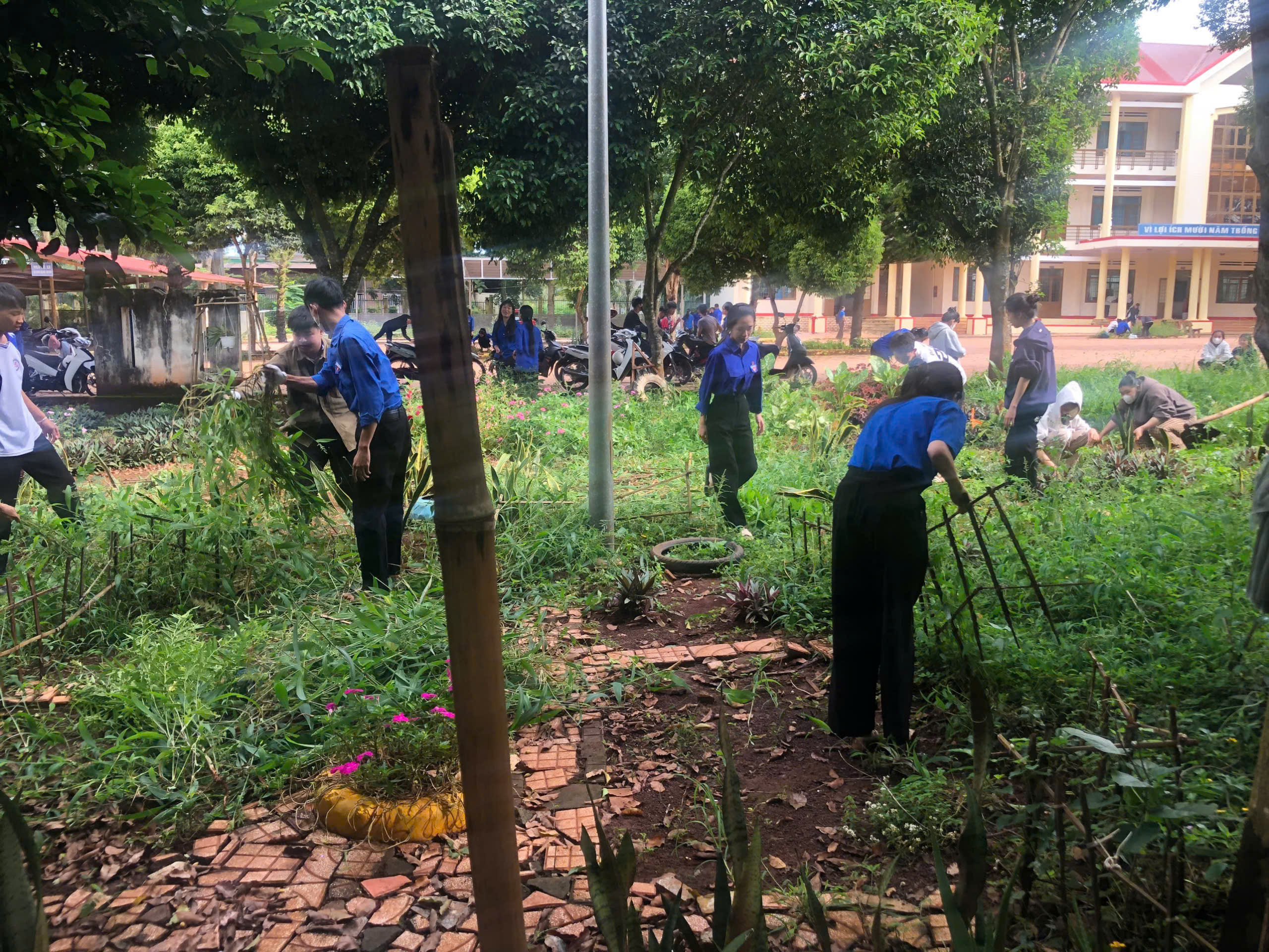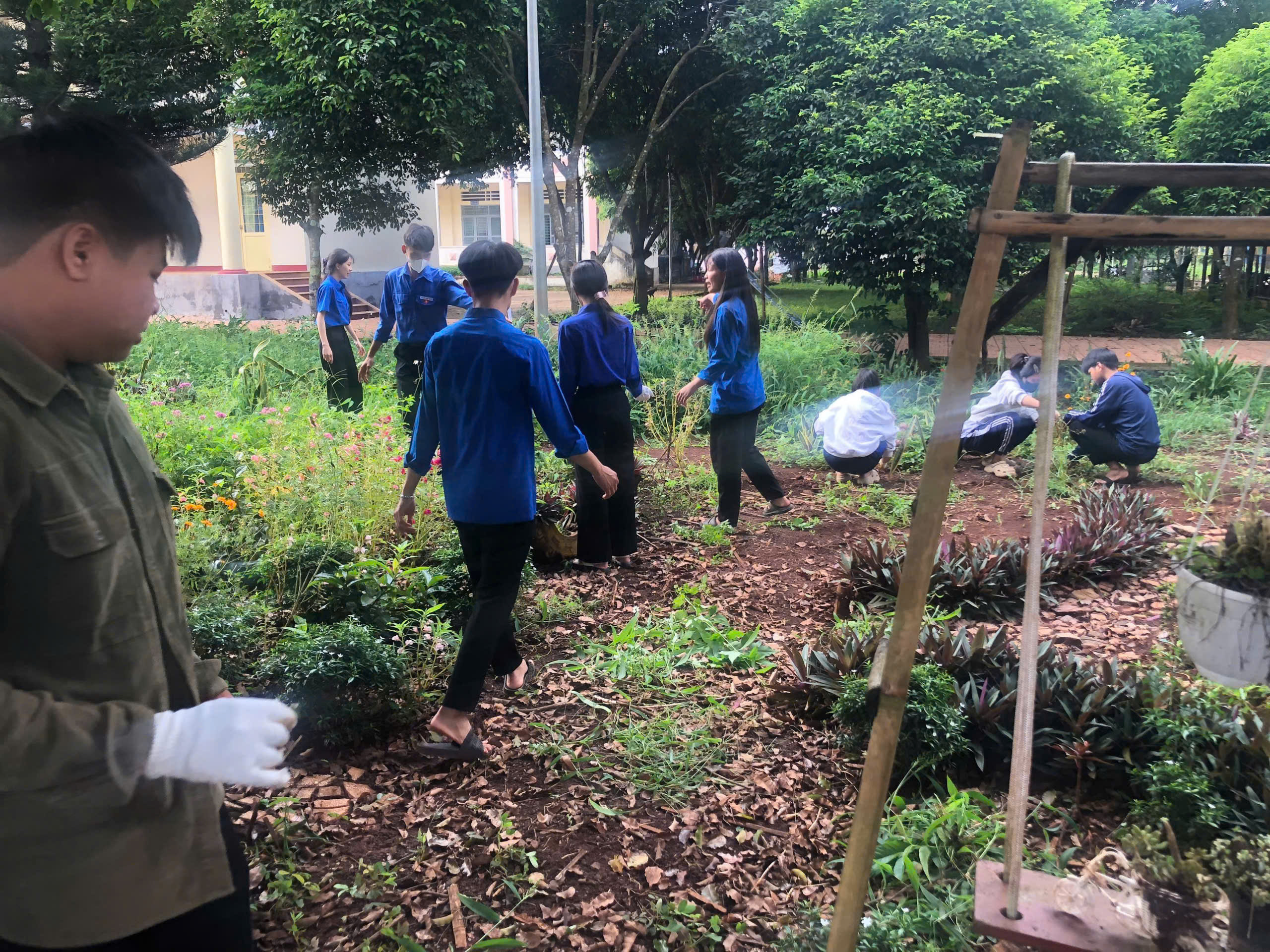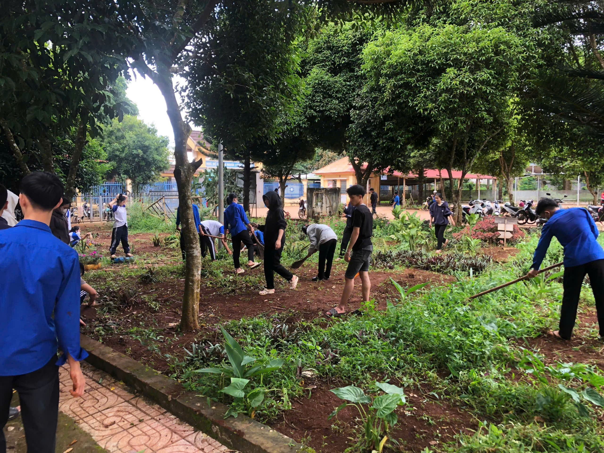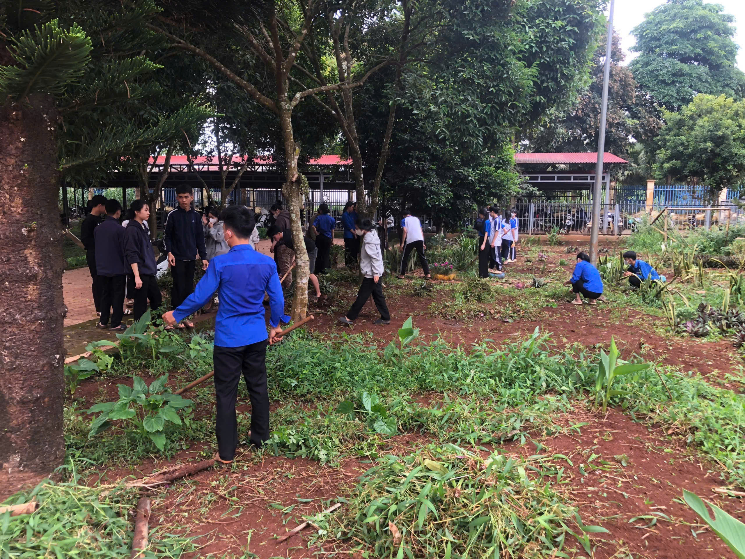 Trong buổi ra quân, các đoàn viên, thanh niên đã tiến hành phát quang bụi rậm, vệ sinh khuôn viên trường, chăm sóc bồn hoa khu vực công trình thanh niên và tuyên truyền nâng cao ý thức bảo vệ môi trường đến học sinh toàn trường.