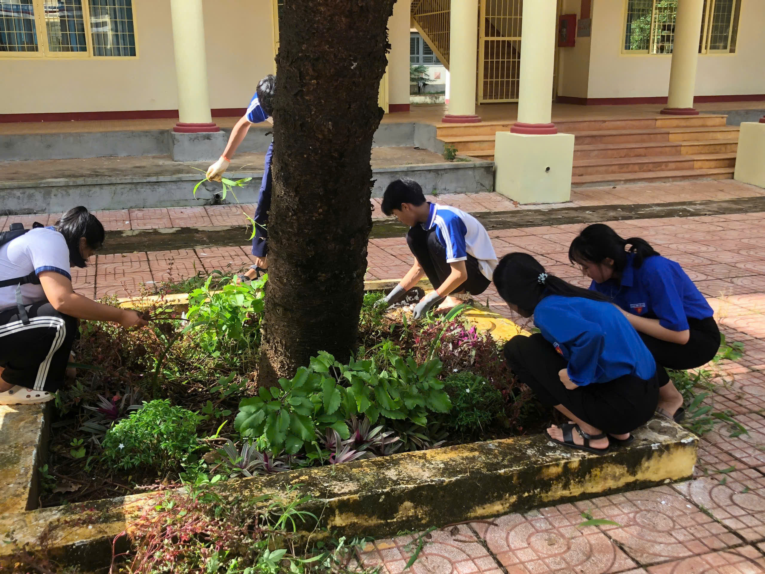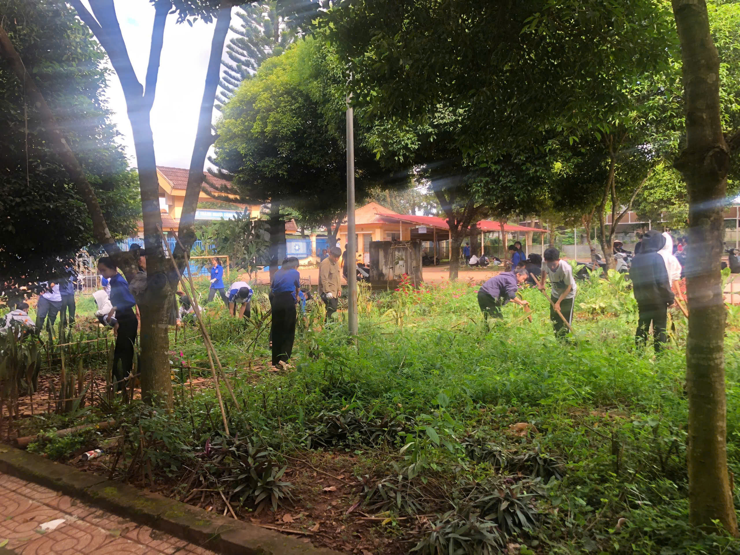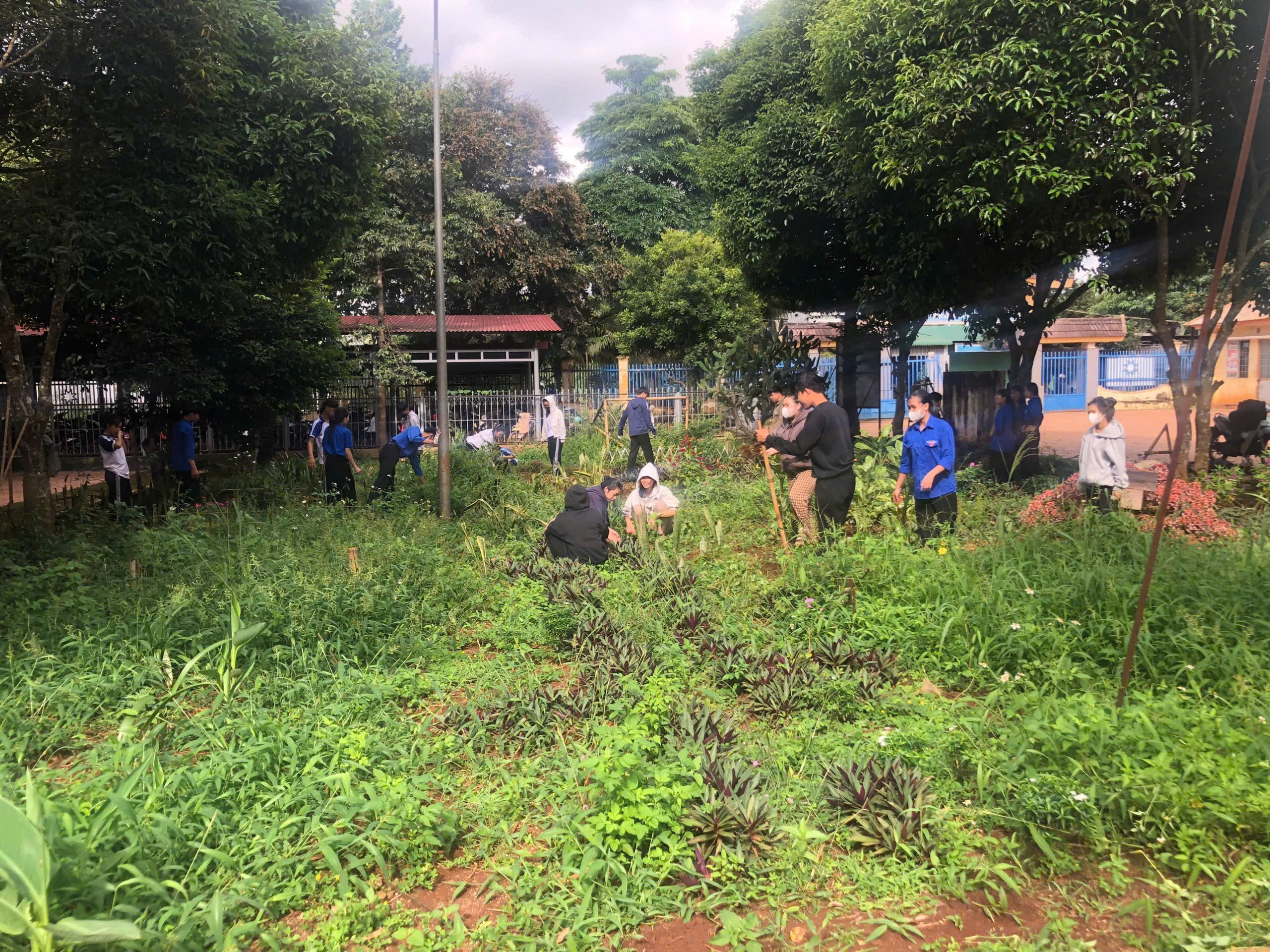 Trong buổi ra quân, các đoàn viên, thanh niên đã tiến hành phát quang bụi rậm, vệ sinh khuôn viên trường, chăm sóc bồn hoa khu vực công trình thanh niên và tuyên truyền nâng cao ý thức bảo vệ môi trường đến học sinh toàn trường.