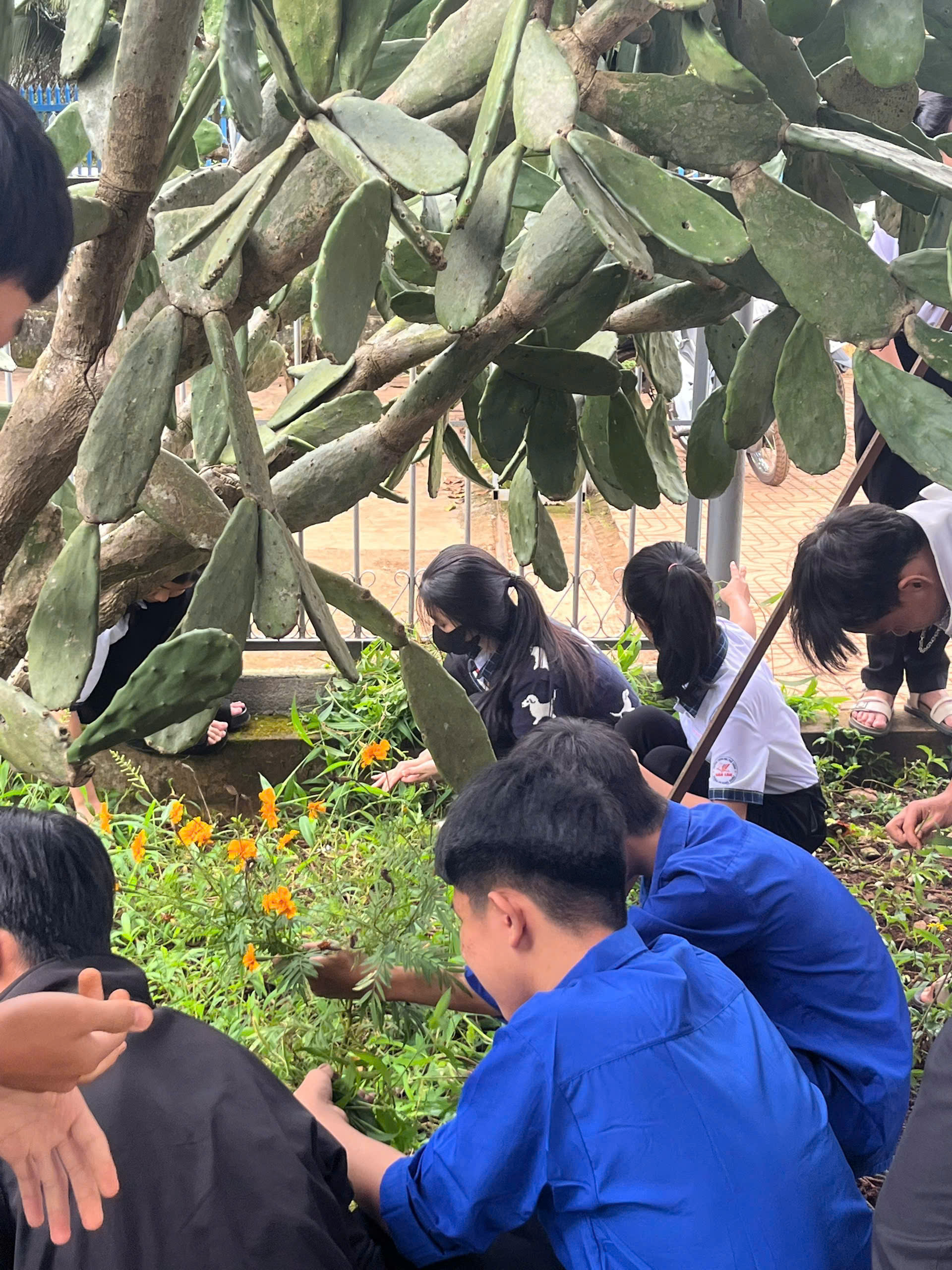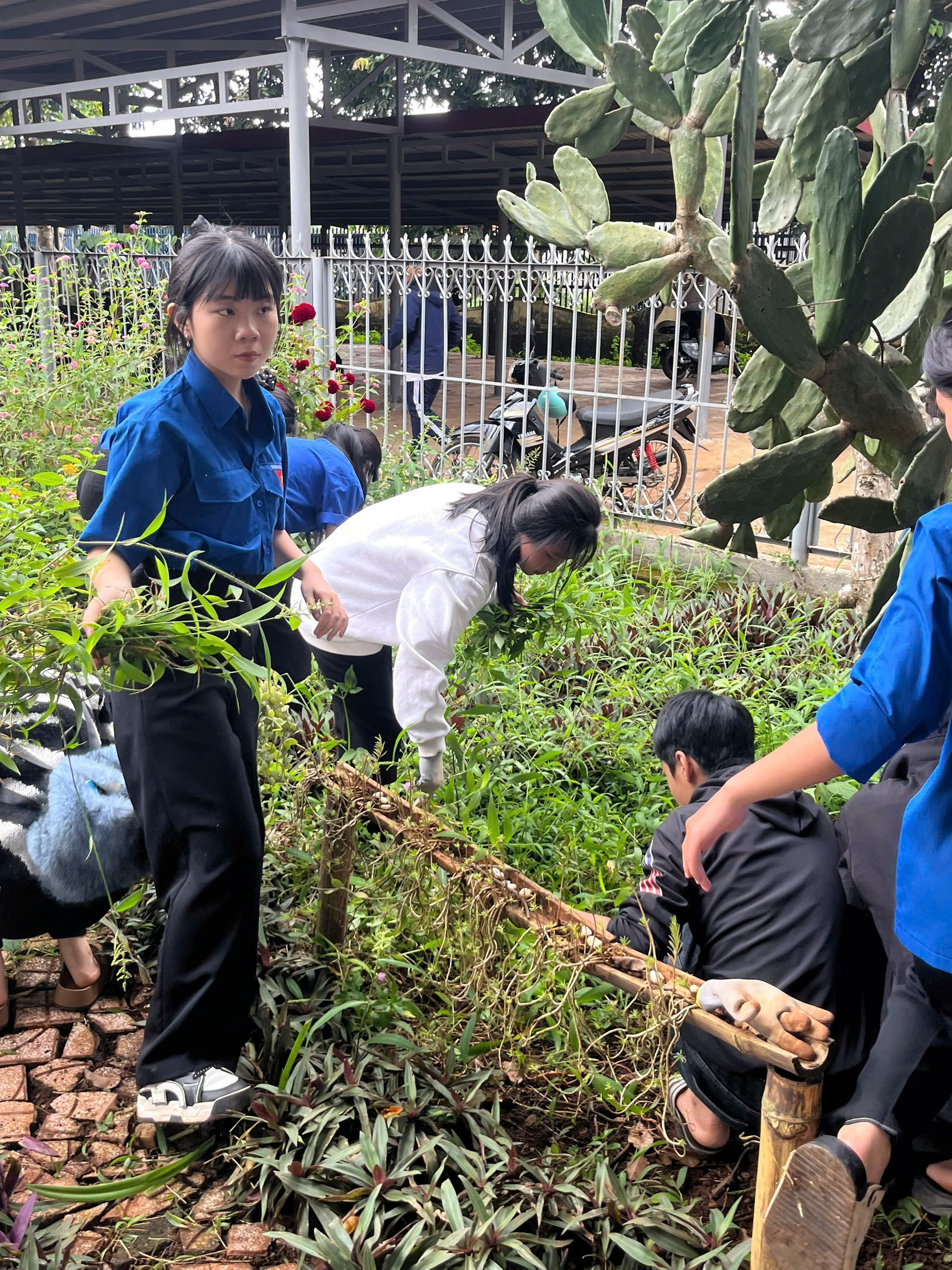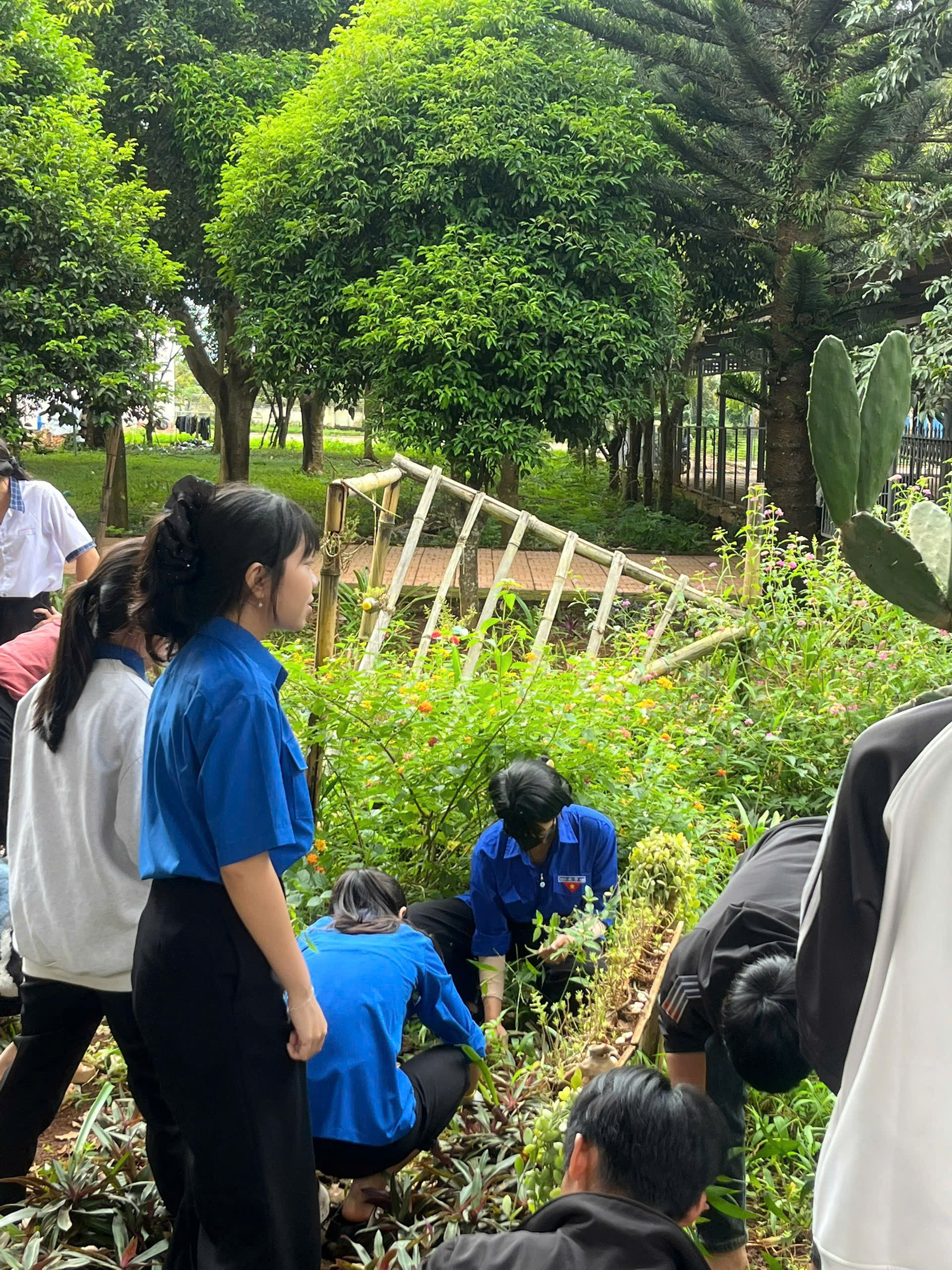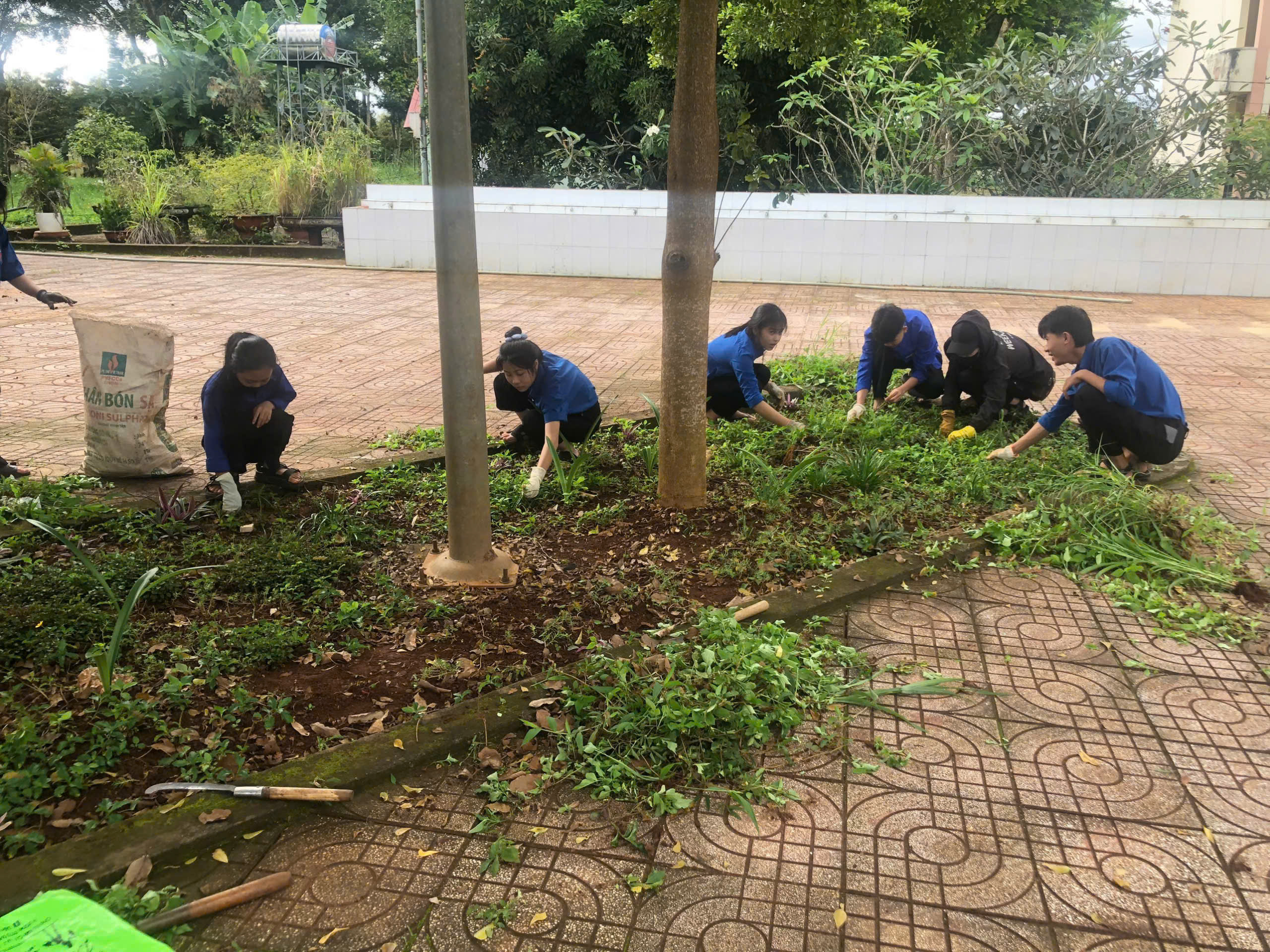 Trong buổi ra quân, các đoàn viên, thanh niên đã tiến hành phát quang bụi rậm, vệ sinh khuôn viên trường, chăm sóc bồn hoa khu vực công trình thanh niên và tuyên truyền nâng cao ý thức bảo vệ môi trường đến học sinh toàn trường.