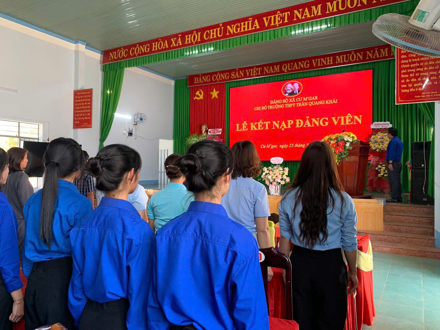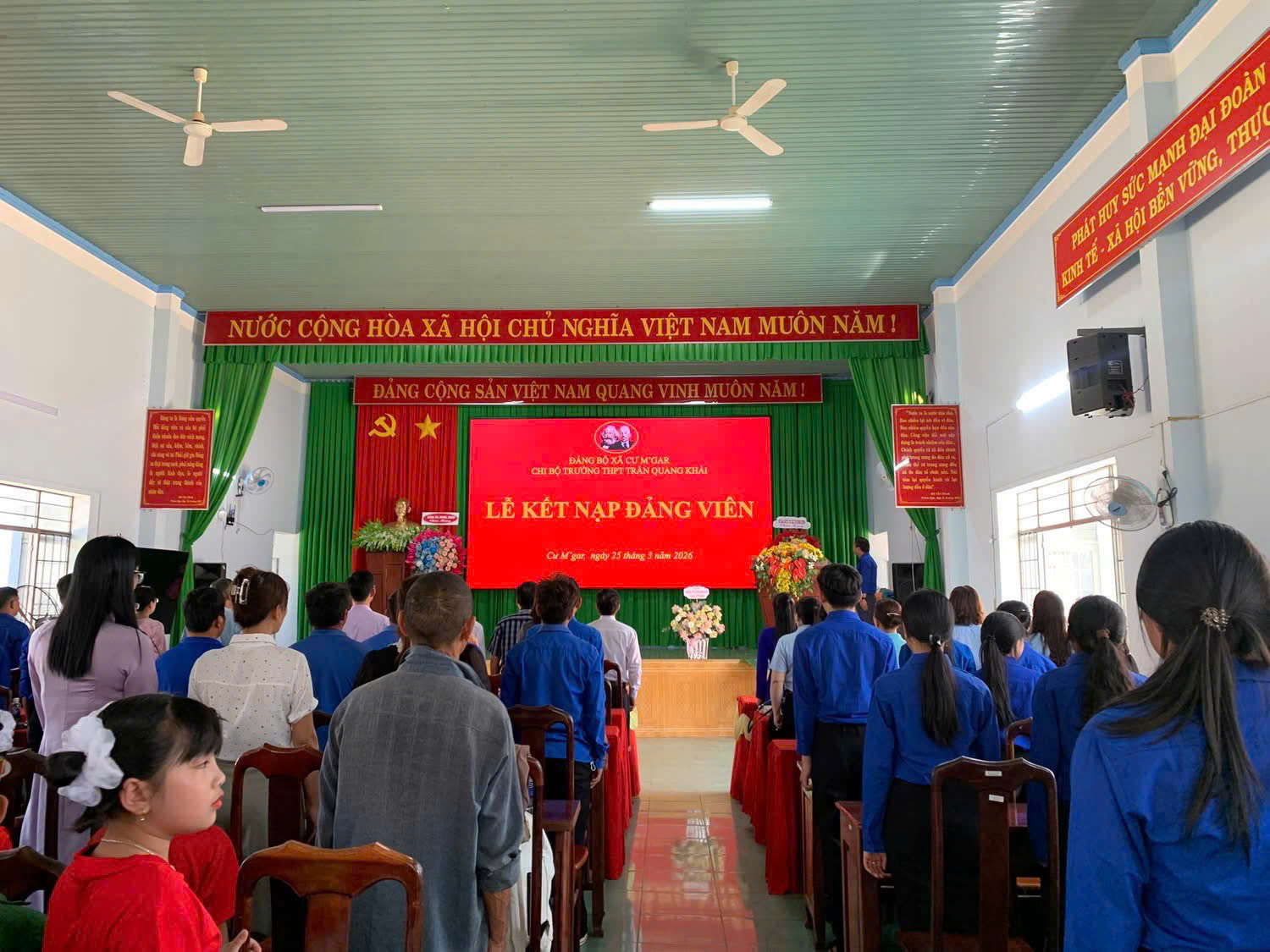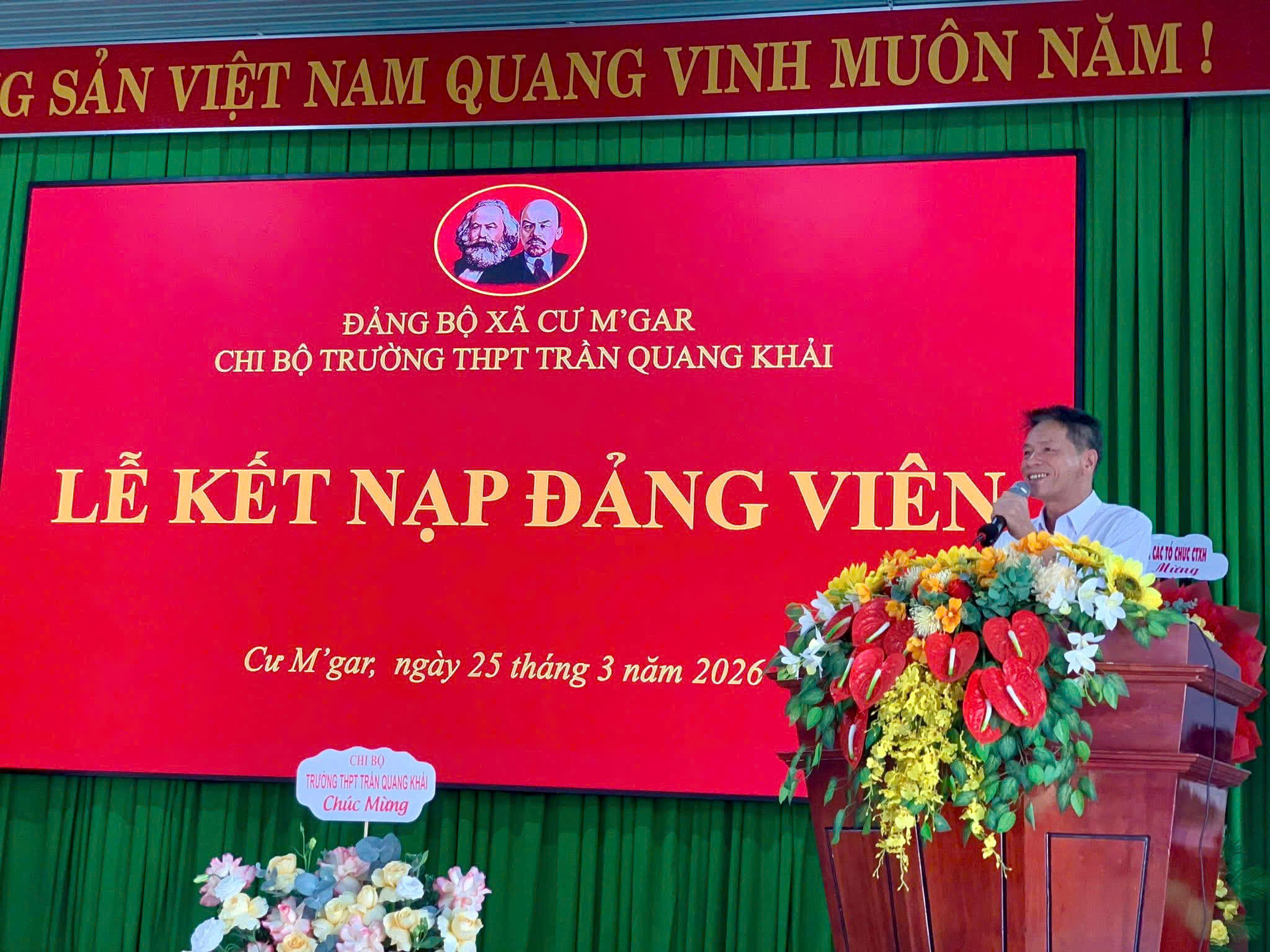 Hòa chung không khí thi đua sôi nổi của tuổi trẻ cả nước hướng tới kỷ niệm 95 năm ngày thành lập Đoàn Thanh niên Cộng sản Hồ Chí Minh (26/3/1931 – 26/3/2026). Chiều ngày 25/3/2026, tại Hội trường Đảng bộ xã Cư M’gar, Chi bộ Trường THPT Trần Quang Khải đã long trọng tổ chức Lễ kết nạp Đảng viên cho 04 đoàn viên ưu tú là học sinh của nhà trường.