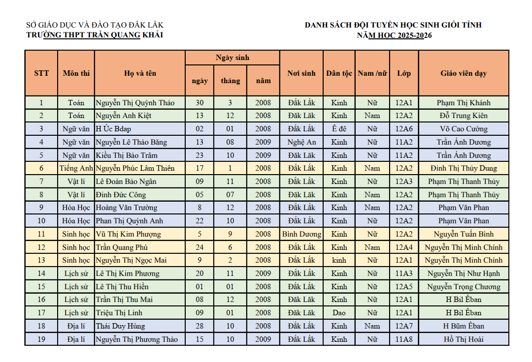 Trường THPT Trần Quang Khải thành lập đội tuyển ôn thi Học sinh giỏi cấp tỉnh năm học 2025–2026