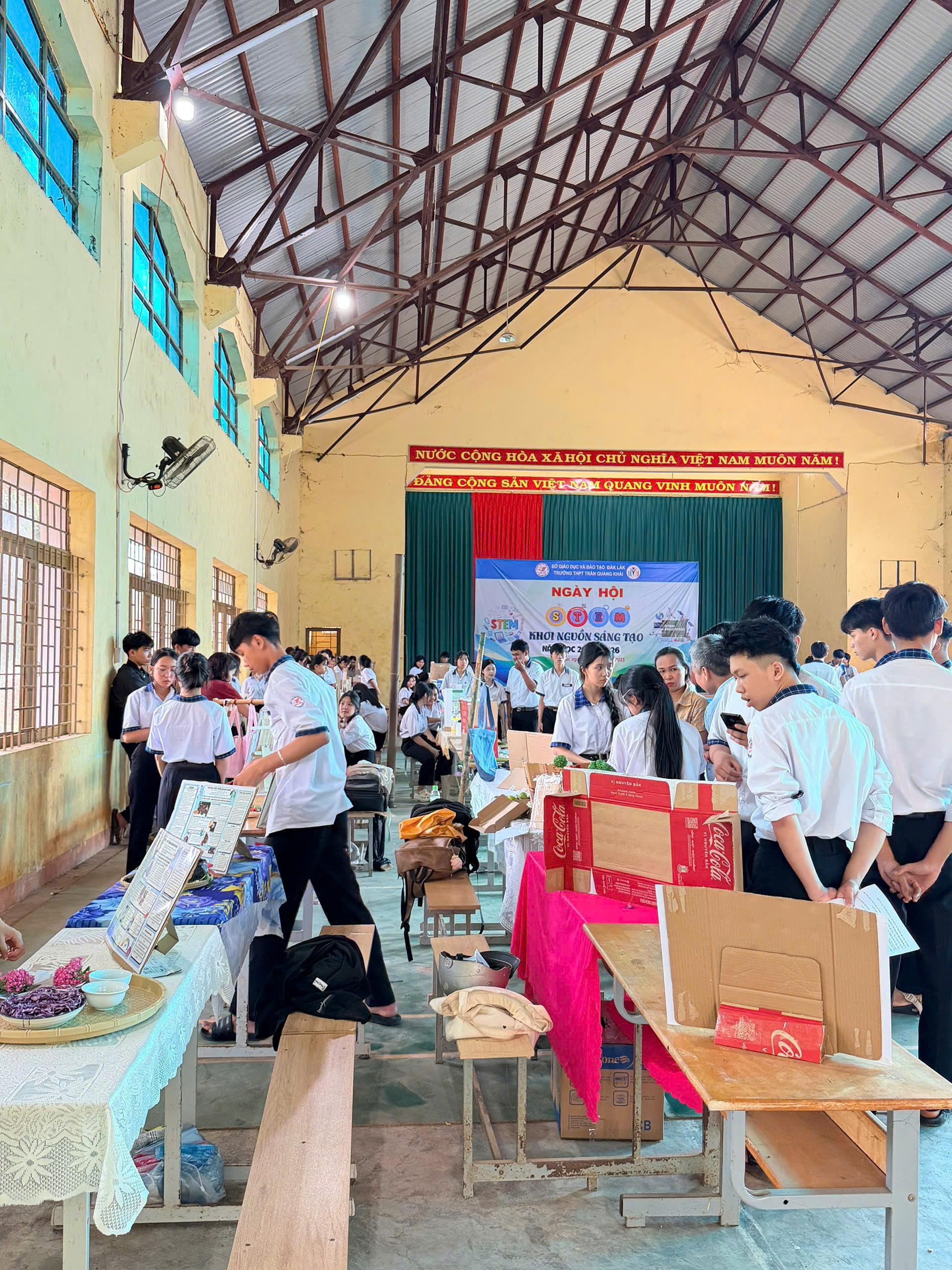 Trong năm học này, ngày hội đã thu hút 64 sản phẩm dự thi đến từ học sinh các khối lớp, bao phủ phong phú các lĩnh vực Vật lý, Hóa học, Công nghệ, Sinh học, Toán học, Tin học, Kỹ thuật và Môi trường. Nhiều sản phẩm được đầu tư công phu, có tính ứng dụng cao, phản ánh sự sáng tạo, say mê nghiên cứu và tinh thần học tập nghiêm túc của học sinh. Song song với đó là sự tận tâm, nhiệt huyết và năng lực chuyên môn vững vàng của đội ngũ giáo viên hướng dẫn, góp phần nâng cao chất lượng hoạt động trải nghiệm và nghiên cứu khoa học trong nhà trường.